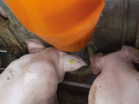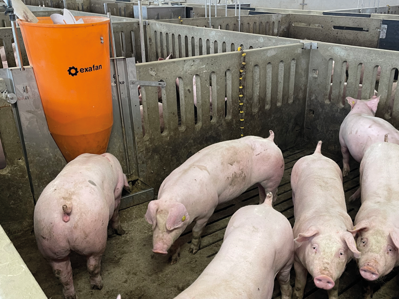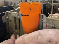 Comedero para engorde, ideal para grupos amplios y de alimentación mixta; comen en seco, pero tienen el agua a su lado. Se optimiza el tiempo de ingesta, se optimiza la conversión y se reduce el consumo de agua y purín, dispone de 2 puntos de agua en referencia a las nuevas normas de bienestar animal, permite comer 2/3 animales simultáneamente.