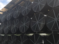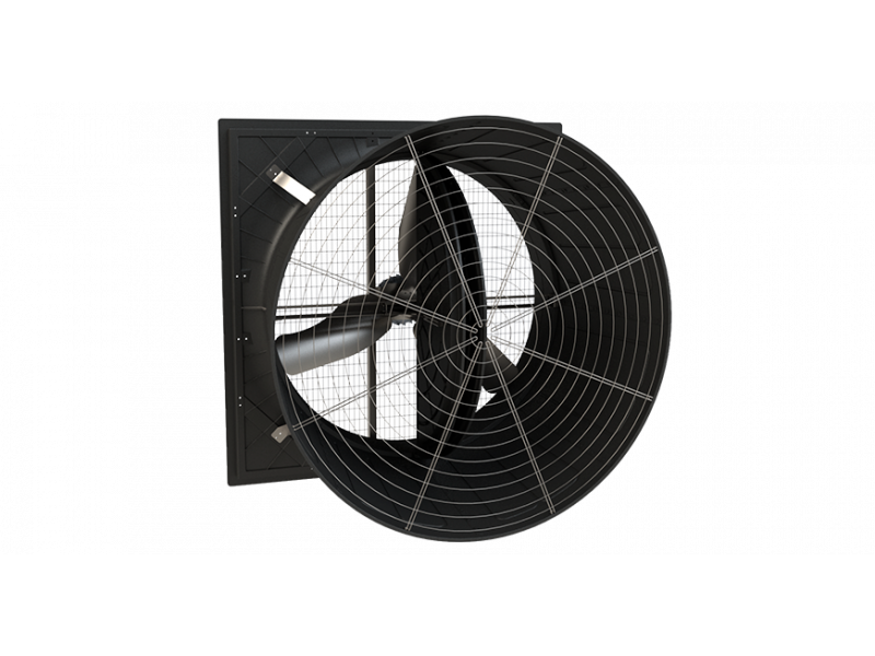 Ventilador de última generación de 60” con cono en plástico desmontable en 8 partes, auto-clipable y apilable. Diseño estudiado para abaratar los costes del transporte al suministrarse desmontado. Virola en plástico, adaptable al panel o murete de la nave, divisible en 4 partes para fácil transporte. Posibilidad de colocación de válvula desmontable en dos piezas fabricada en plástico.
